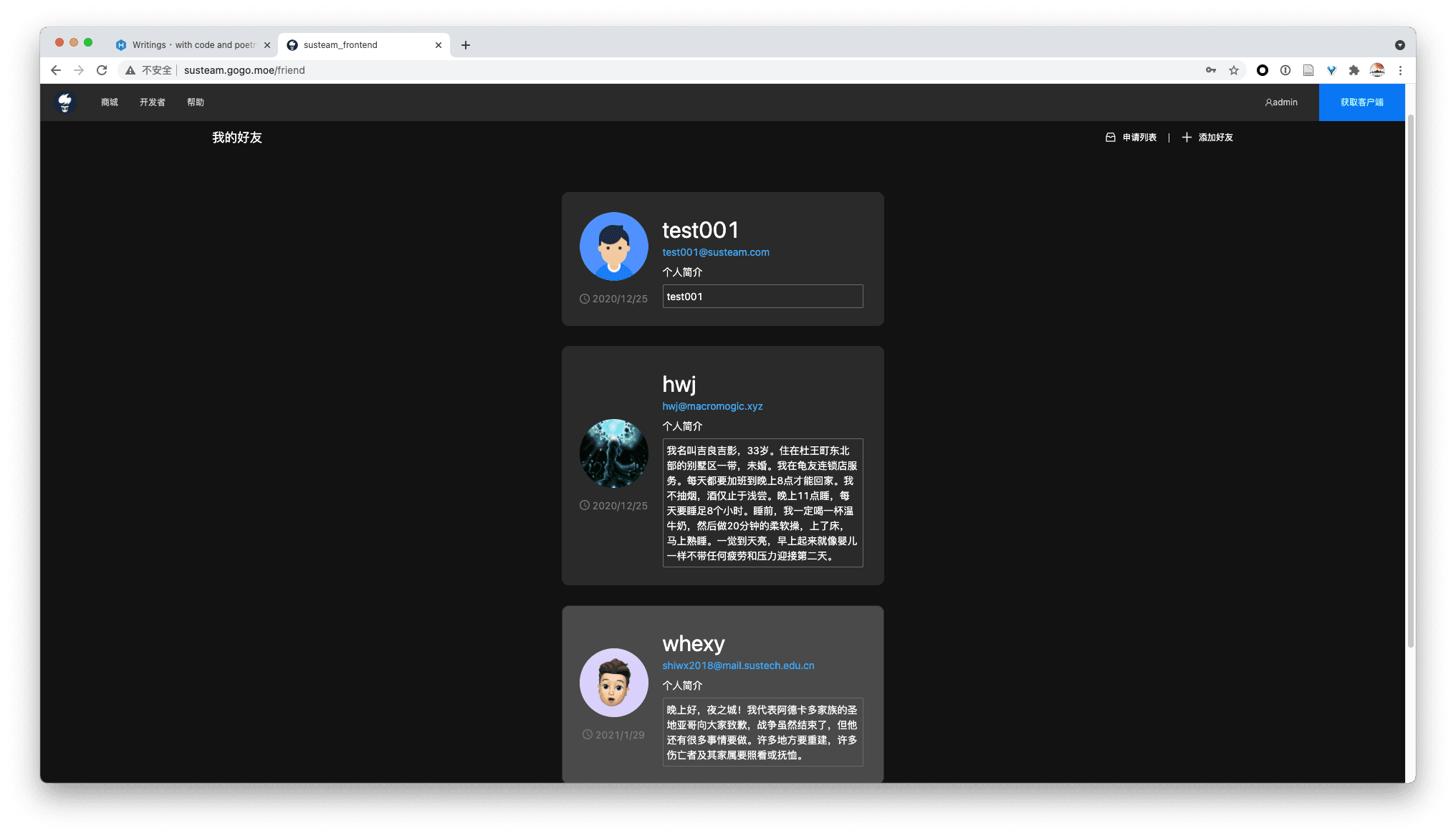 For users, SUSTeam provides a web frontend mainly for browsing and purchasing, and a client that adds local game library, download, and update functions on top of the web interface. For developers, SUSTeam provides a management platform and SDK for integrating platform services.